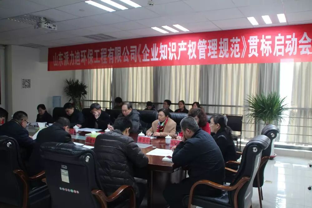 12月4日,派力迪召开贯彻执行《企业知识产权管理规范》贯标启动暨培训大会。山东淄博知识产权局副局长胡庆乙、高新区科技局总工刘鹏到会祝贺并做重要讲话,贯标咨询服务机构青岛发思特**商标代理有限公司经理耿霞及派力迪总经理梅伟、总工张建平及中层以上管理人员、在单位的全体员工出席了会议。会议由国立杰主持。